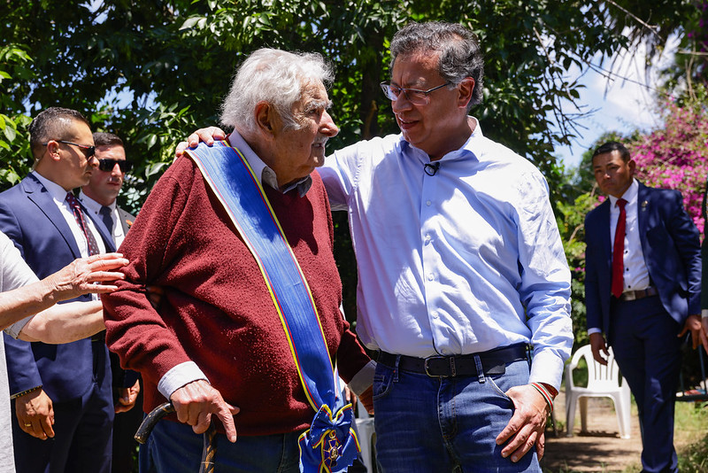 Mujica tuvo una relación cercana y afectuosa con Colombia. Fue mediador e inspirador durante las negociaciones de paz con las FARC, y siempre abogó por el perdón y la reconciliación. En 2022, celebró la elección de Gustavo Petro, diciendo que “Colombia tiene hambre acumulada de paz”. Su visita a Colombia en 2024, donde recibió la Orden de Boyacá, fue un acto profundamente simbólico: un reconocimiento de un país que supo escuchar su mensaje de esperanza.